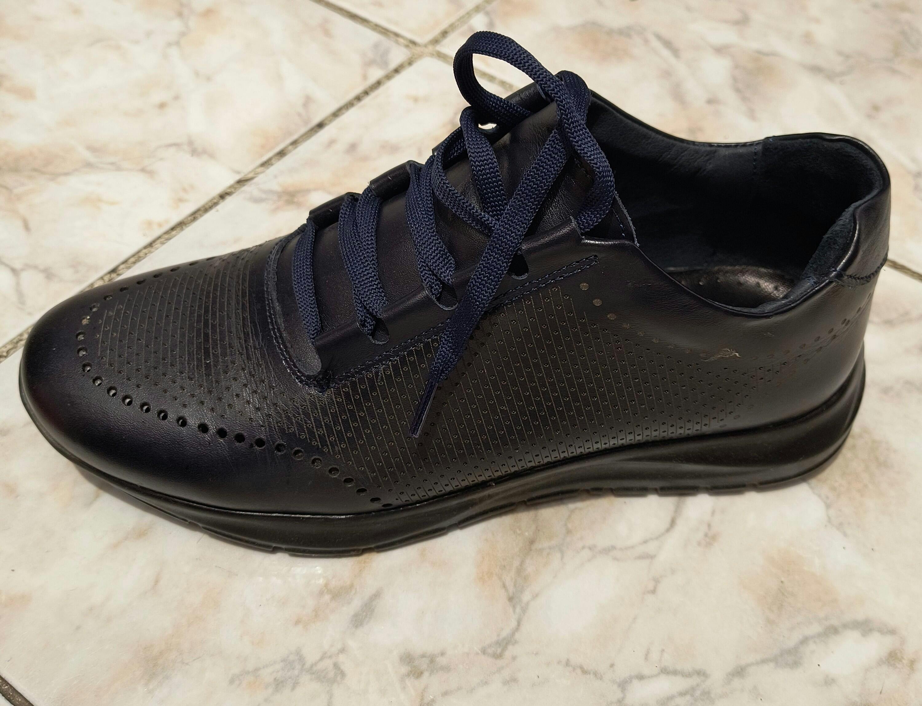 Pantofi sport bărbați din piele naturală de culoare bleumarin, cu interior confortabil din piele naturală și talpă ușoară din poliuretan .